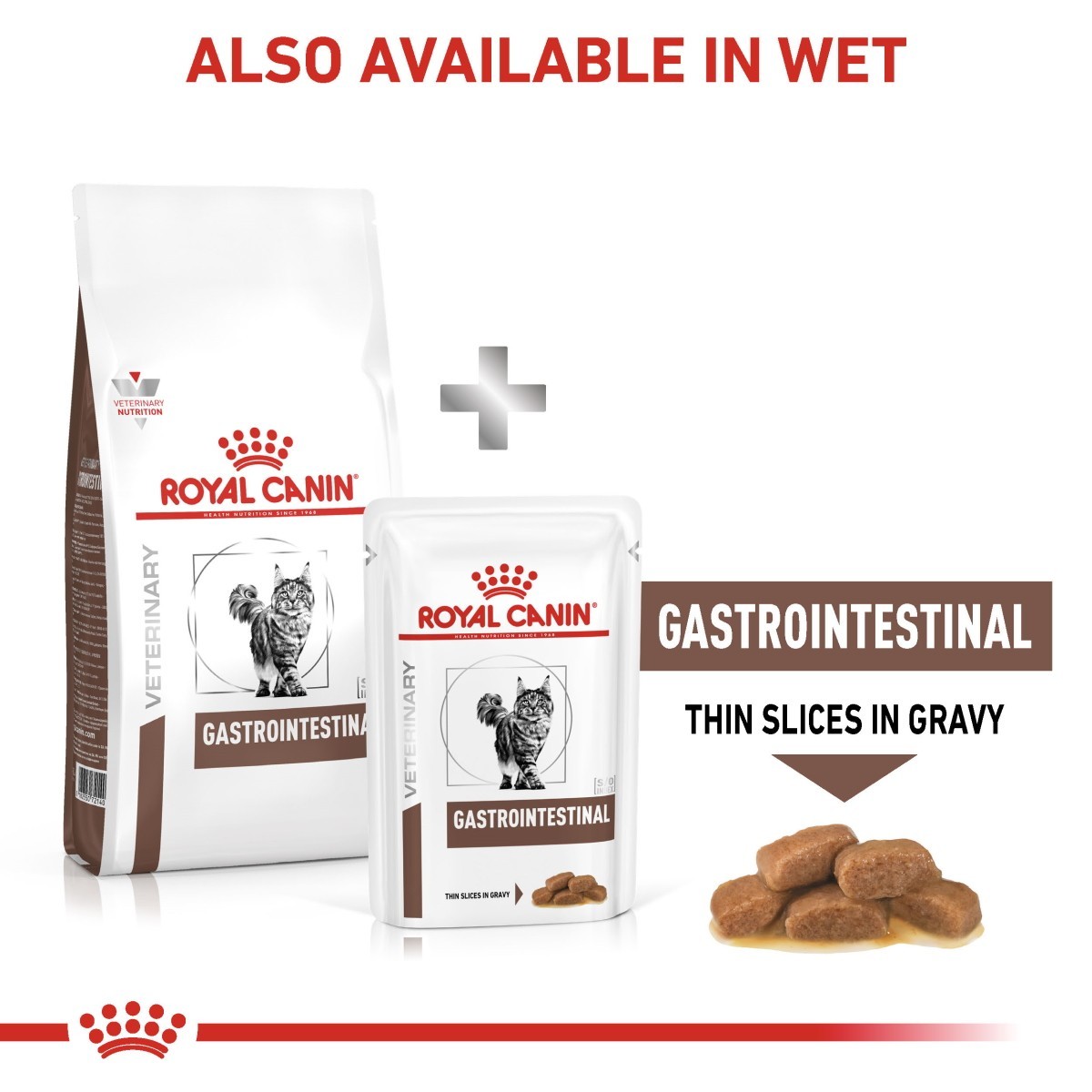 Royal Canin Gastro Intestinal Dry Food for Cats is a nutritionally complete vet diet to promote nutritional restoration and convalescence in cats with acute and chronic digestive disorders.