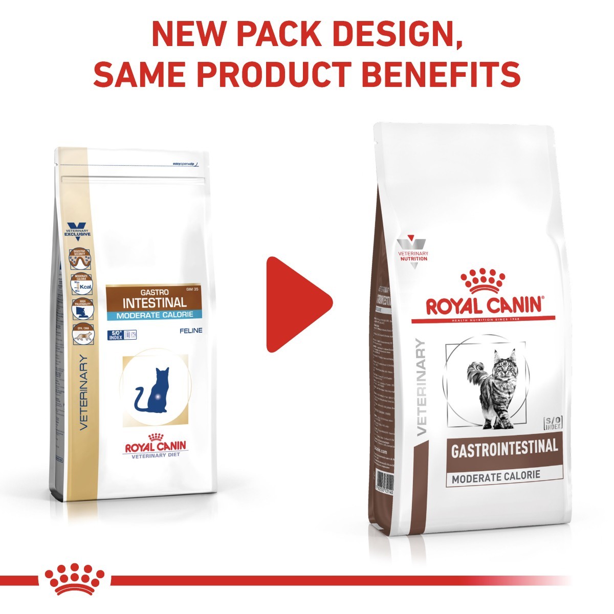Royal Canin Gastro Intestinal Moderate Calorie Dry Food for Cats is a carefully balanced vet diet for overweight, neutered or inactive cats (prone to weight gain) with acute and chronic digestive disorders.