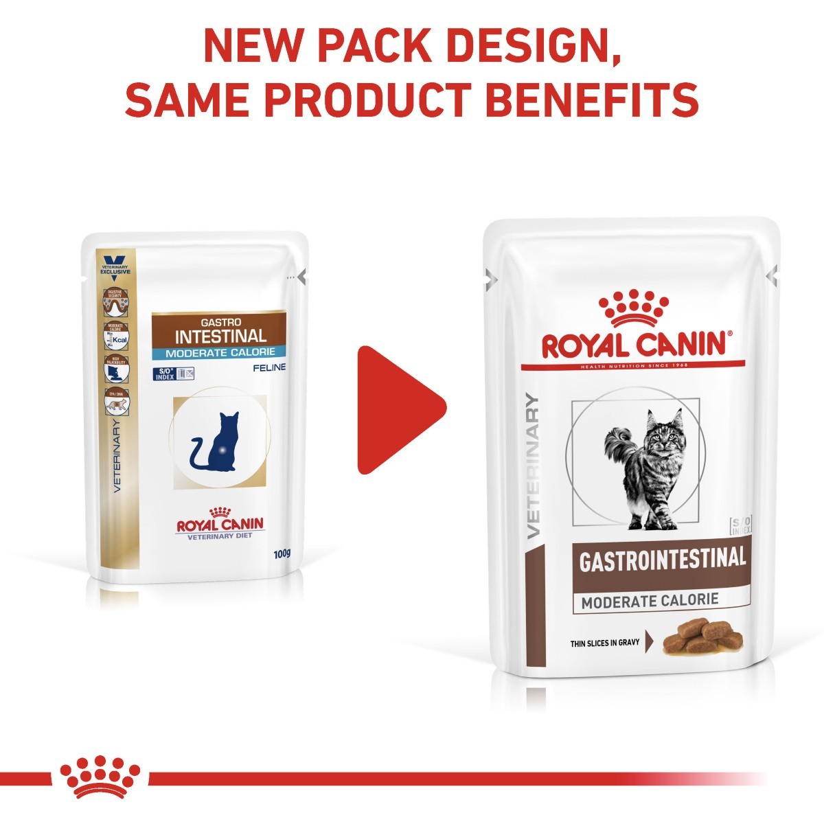 Royal Canin Gastro Intestinal Pouches for Cats is a complete and balanced vet diet for cats with acute and chronic digestive orders, to promote nutritional restoration and convalescence.