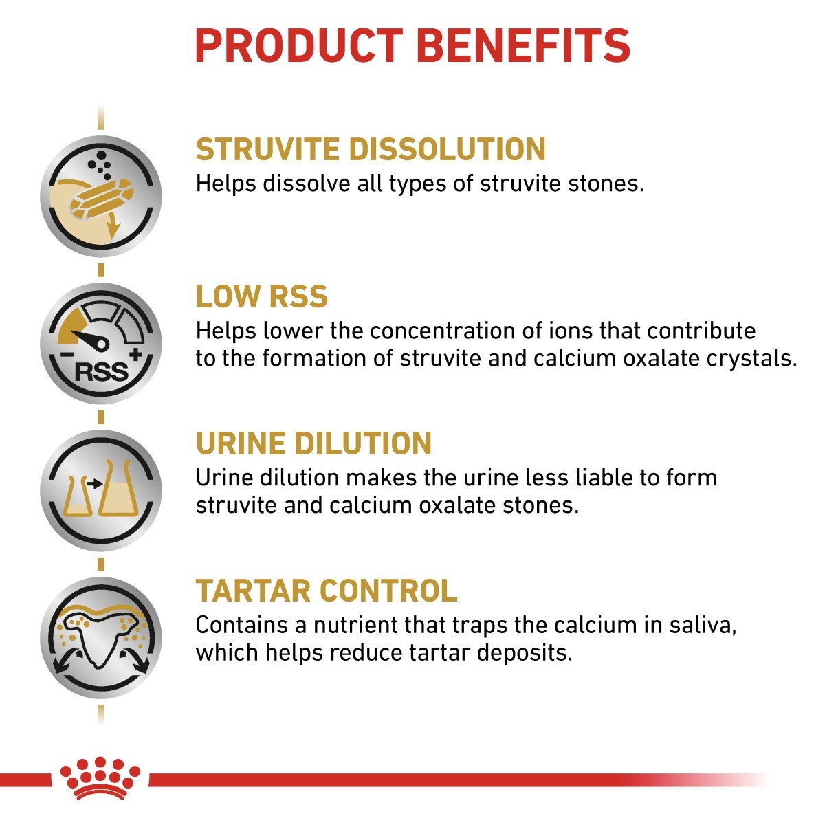 Low RSS: Low Relative Super Saturation diets encourage a urinary environment unfavourable to the development of struvite and calcium oxalate crystals